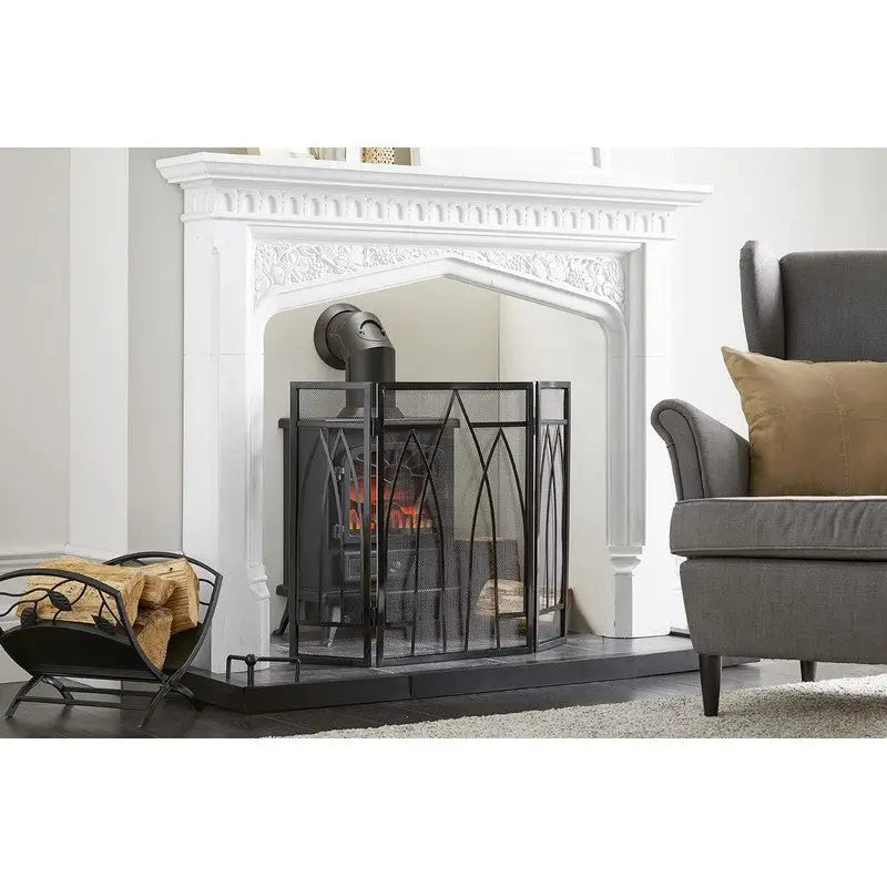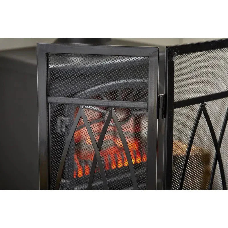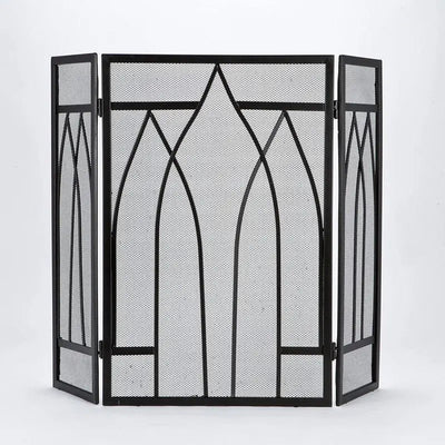 3 Fold Black Heavy Wrought Iron Screen Flames Design