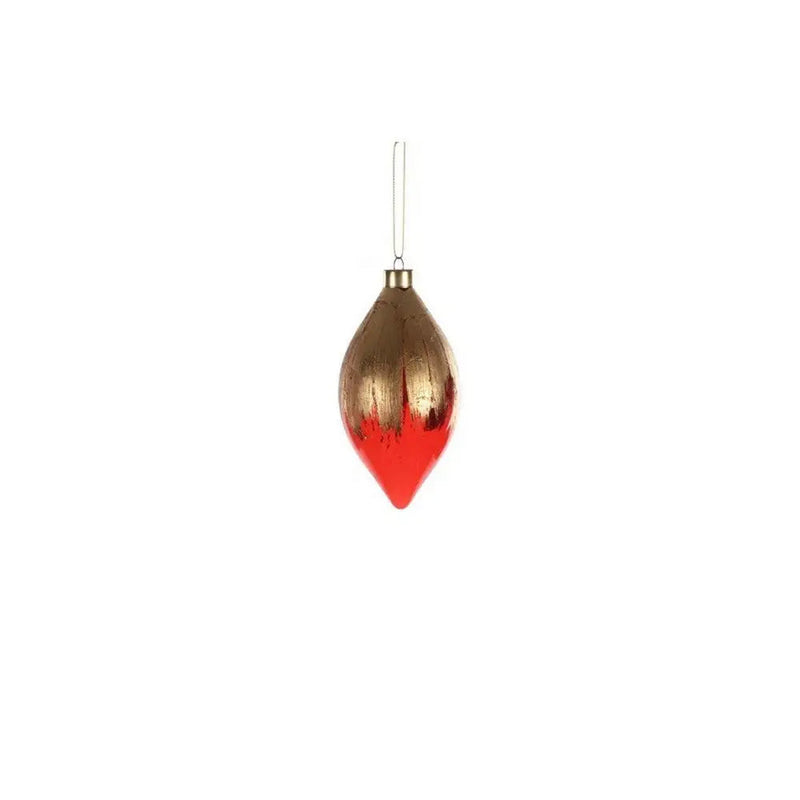 Add a touch of Winter to your home with the Red & Gold Drop Glass Bauble. Illuminate your bauble by placing it beside the twinkling tree lights during the winter months. Its a timeless and stylish piece that you can use every year.