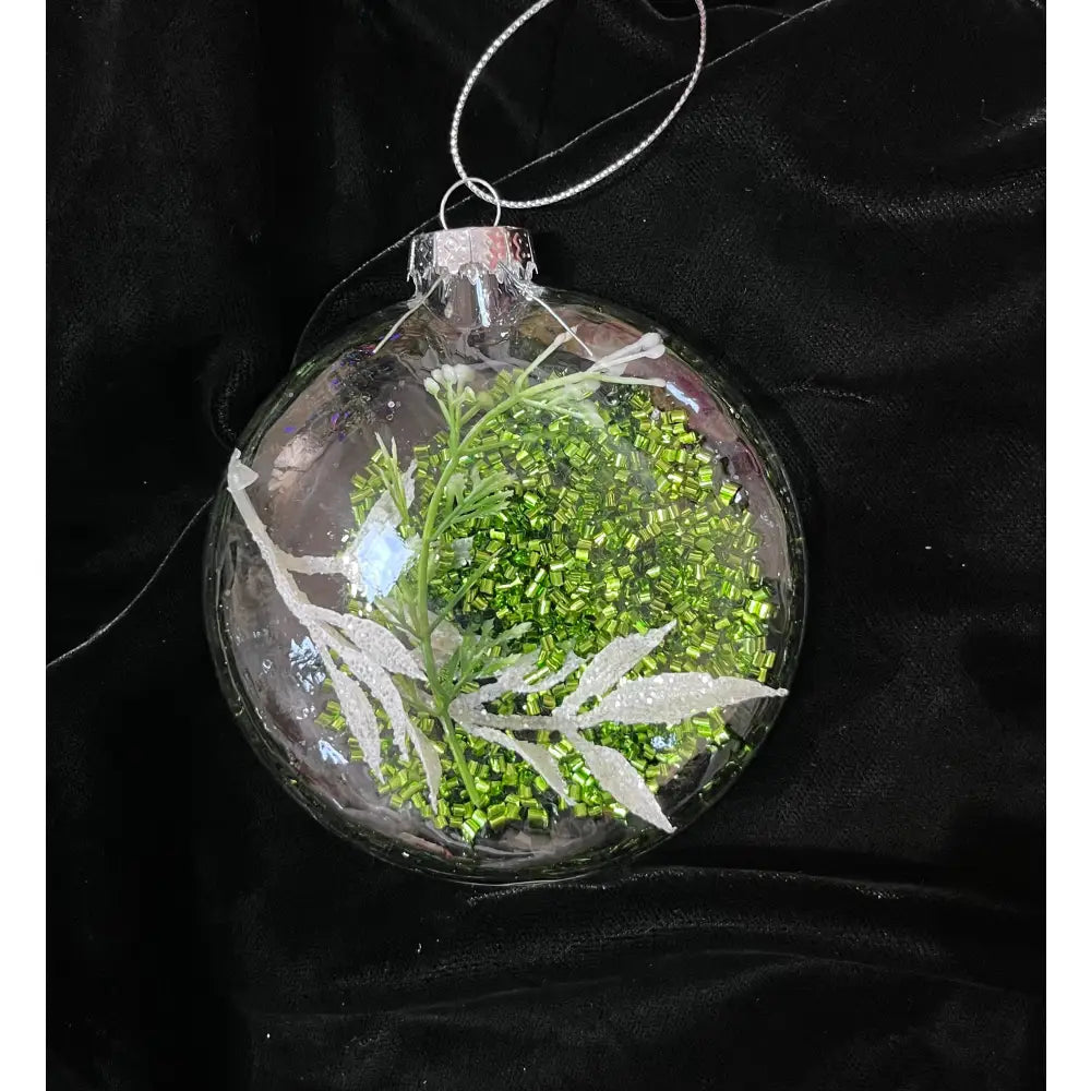 Jingles 9.5cm Flat Glass Bauble Green Beads / Leaf