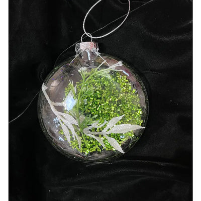 Jingles 9.5cm Flat Glass Bauble Green Beads / Leaf -