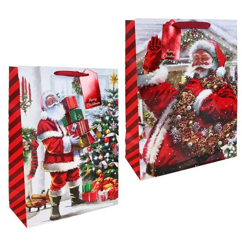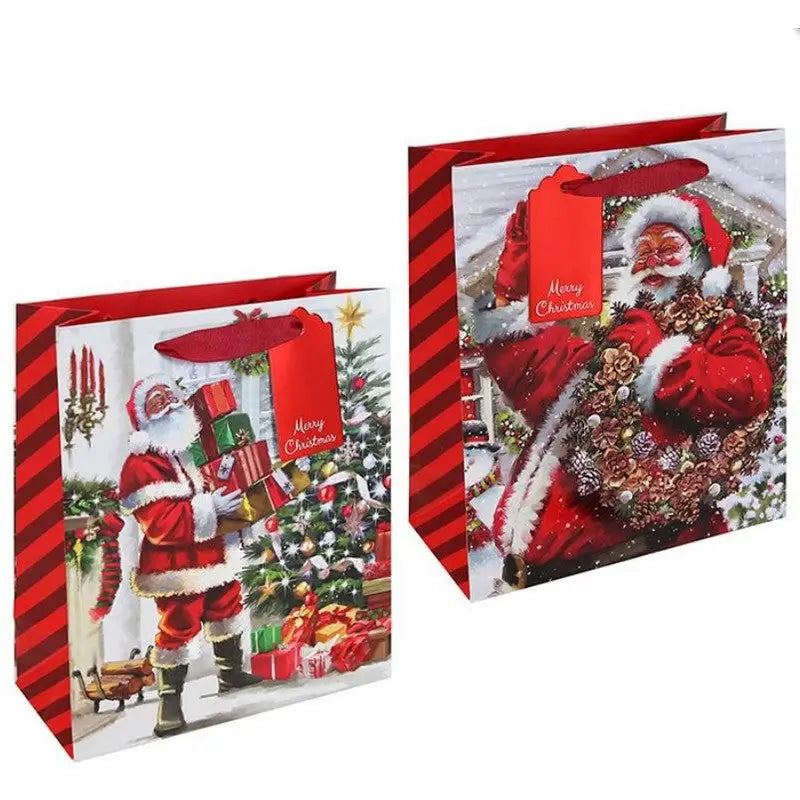 Bring holiday cheer to your gift-giving with these Joyful Santa Gift Bags. Featuring two assorted designs, each bag adds a festive touch to any present. Available in various sizes, they perfectly fit gifts big or small, making wrapping simple and fun. Make your Christmas gifting memorable and hassle-free with these charming, ready-to-use bags.