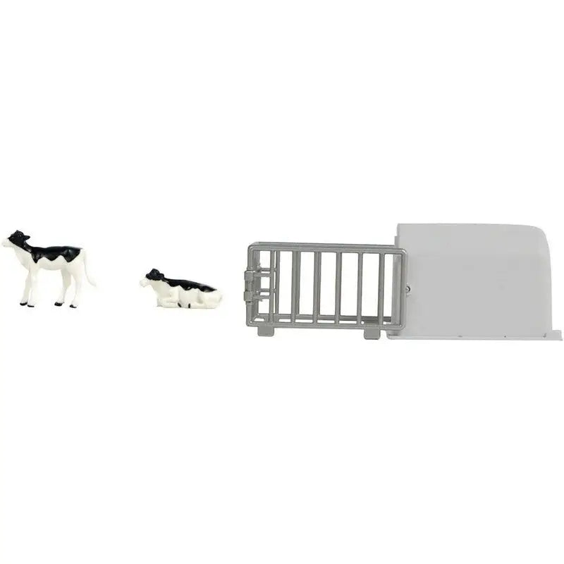 Reminiscent of farm life, this 1:32-scale Calves Hut House from Kids Globe features two molded plastic calves and a wooden hut house with a lifting roof. The realistic design is sure to inspire imaginative play and delight any young farmer.