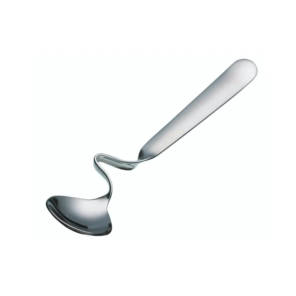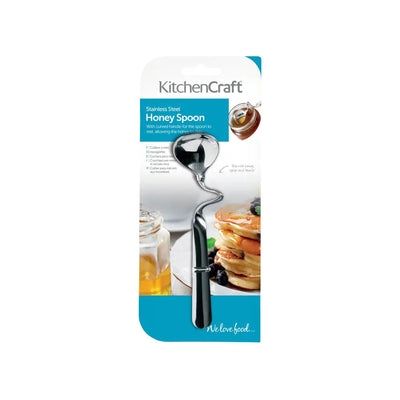 Specifically designed honey spoon with a curved handle to hold the spoon securely on jar, cup, mug, and bowl rims, keeping your table surfaces clean, and allowing the honey to drip off the end back into the jar.