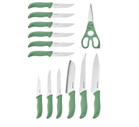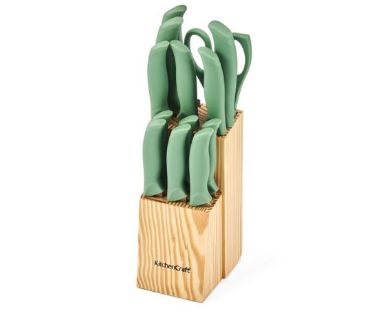 KitchenCraft 14pc Knife Block Set with 7 Knives and a Pair of Kitchen Shears, Green