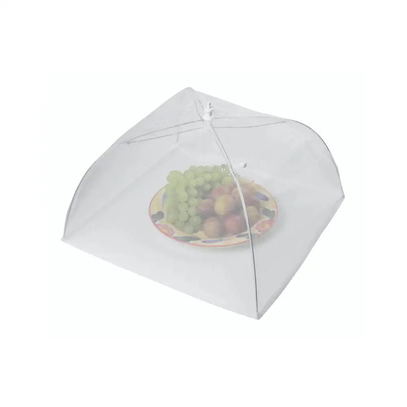 Protect food and contents from dust and insects when eating outside this summer with the highly useful, foldable square food cover. The convenient umbrella style cover features an easy pull string action with locking mechanism, to assemble and then collapse when required for easy storage. The cover also features extremely fine mesh for ultimate protection and lace edging.