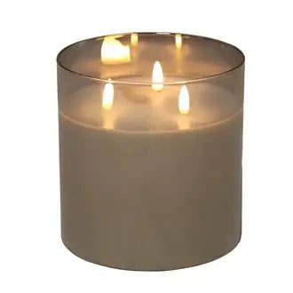 LED Multi Wick Candle Grey Glass, measuring 15x15cm. This would look fab inside a lantern as it gives off the perfect glow! PLEASE NOTE - this is battery operated.