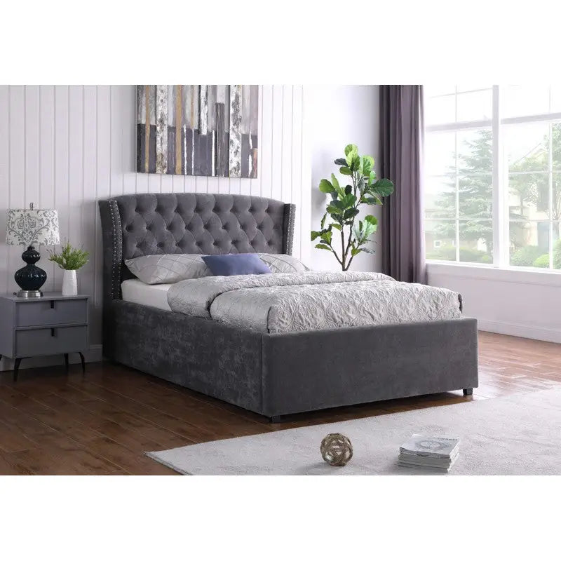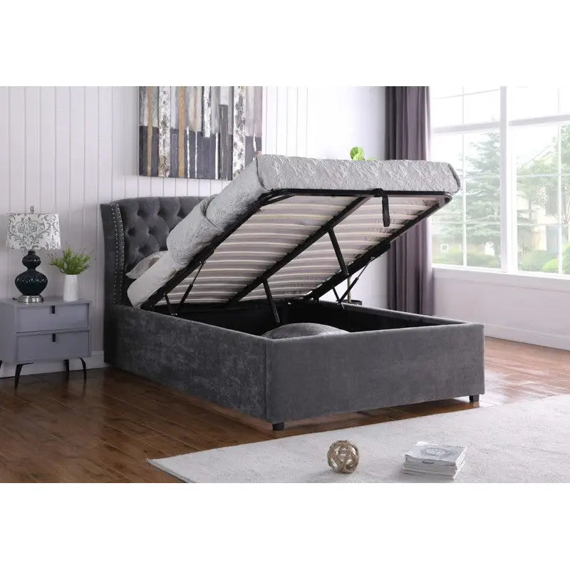 Lorraine Iron Grey gas lift ottoman bed available in the following sizes:-