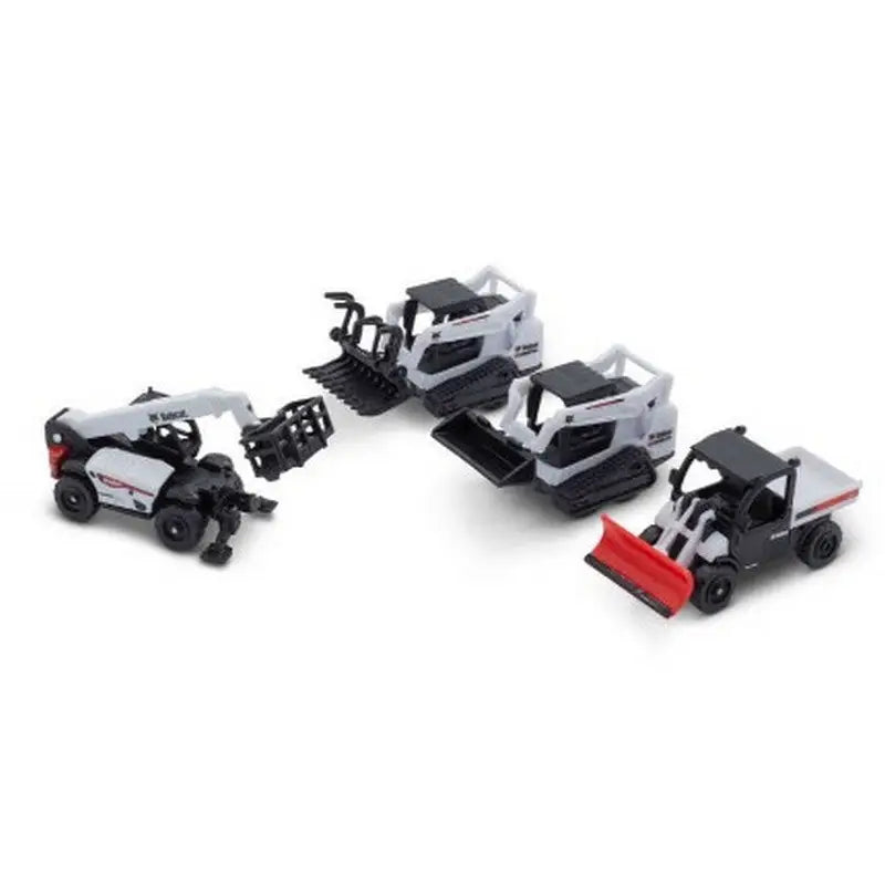 Pack of four Bobcat construction vehicles with moving parts. Each vehicle in this pack features familiar black and white Bobcat livery as well as a range of moving parts, such as articulating arms and spinning wheels. The attention to detail is fantastic, with each model looking great whether it's on display, or in the toy box.