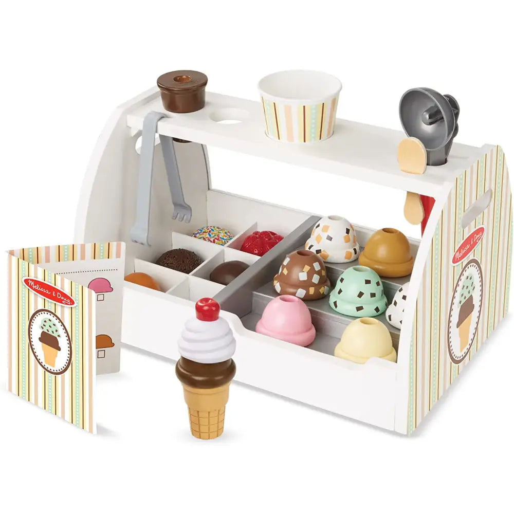 This Melissa & Doug Wooden Ice Cream Counter Play Set features realistic, hand-painted details and accessories. Children can have endless imaginative play with its ice cream scoops, cones, and toppings. Plus, it comes with an activity guide to provide fun and educational activities. Perfect for encouraging creativity and fine motor skills development.