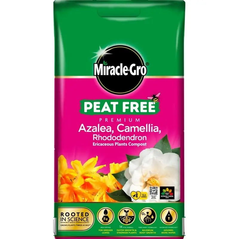 Boost the growth and health of azaleas, camellias, and rhododendrons with Miracle-Gro Peat Free Azalea, Camellia, Rhododendron Ericaceous Plant Compost. This 10L bag of compost is made without peat, reducing the harmful impact on the environment. Give your plants the proper nutrients they need for beautiful blooms and vibrant foliage.