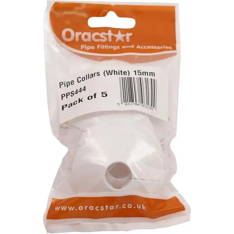 Oracstar Pipe Collars 15mm come in a convenient 5-pack, available in sleek chrome or classic white finishes. Designed to neatly cover pipe joints, these collars provide a clean, professional look while protecting your walls from damage. Easy to install and durable, they offer a simple solution to enhance the appearance of your plumbing with minimal effort. Perfect for both new installations and repairs, these pipe collars combine functionality with style.