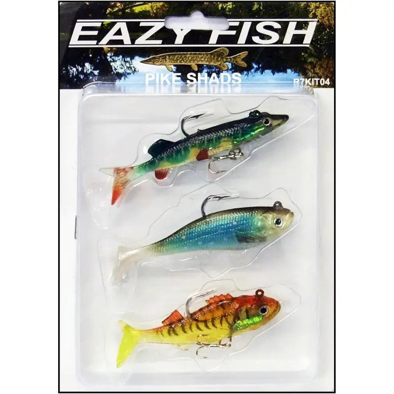 The Dennett Eazy Fish Pike Shads Lure Kit includes 3 assorted lures - 1 Jelly Pike and 2 Shads. These lures are expertly designed to attract pike and other fish, increasing your chances of a successful catch. Made with high-quality materials, these lures are a must-have for any fishing enthusiast.