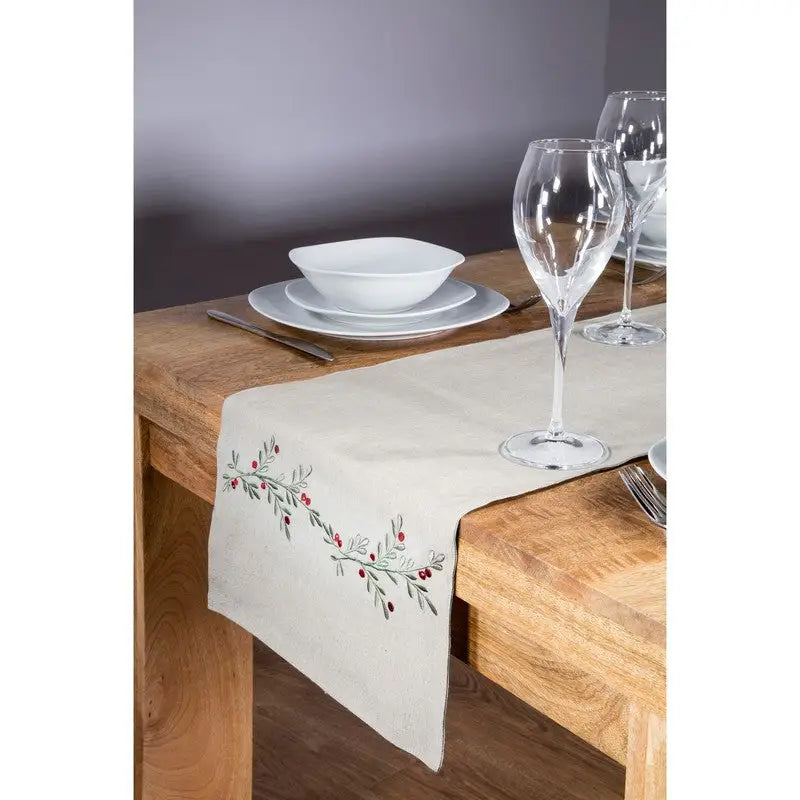 Elevate your holiday table with our Premier Embroidered Chambray Holly Berry Table Runner. Made of high-quality chambray fabric, this 2m runner features intricate embroidered holly berry designs. Add a touch of festive elegance to your dining experience with this unique and beautiful table runner.