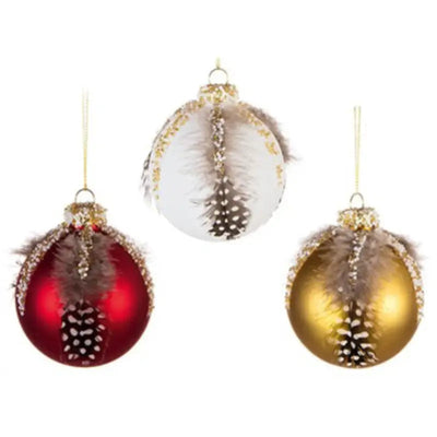 Premier Gold, Red & White Glass Woodland Feather 3 Assorted (1 Supplied)