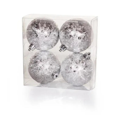 Premier 80Mm X 4Pcs 2 Assorted Bauble With Flower Wrinkle Silver (1 Supplied)