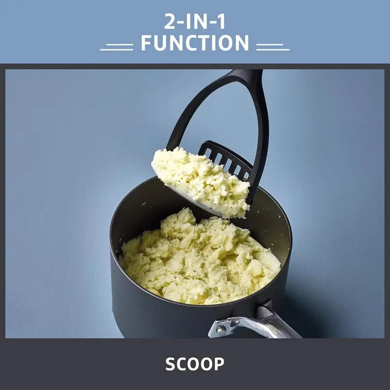 - ANTI SCRATCH SILICONE SCRAPERS - Make scratches a thing of the past with this hand held potatoes masher. These cooking utensils feature grey silicone edges to prevent scratching your non stick cookware whilst being great for scraping every last drop of any sauce