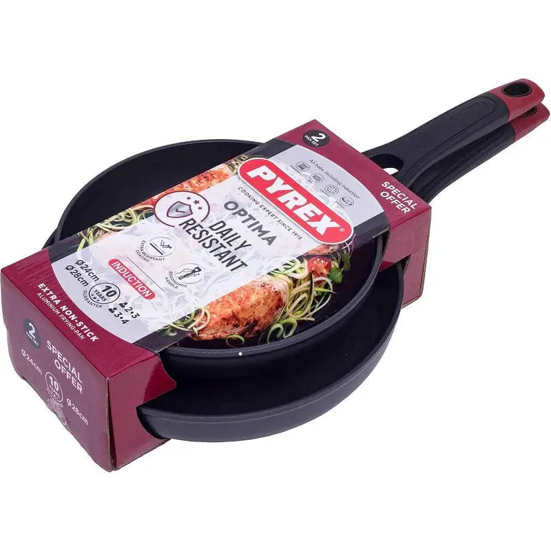 - OPTIMA BY PYREX - Your daily partner for everyday cooking ! Thanks to its extra resistant non stick coating, Optima is the ideal frying pan for all your daily recipes and are easy to clean and ingredients never stick.