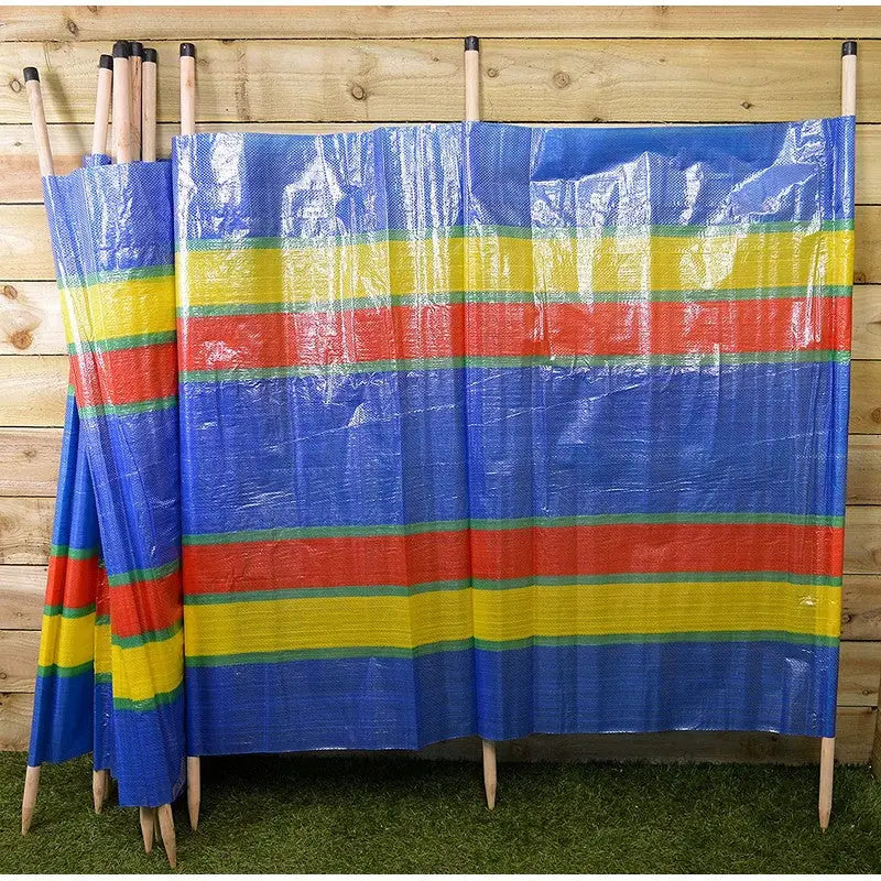 Expertly crafted for beach trips, picnics, and outdoor adventures, the Redwood Leisure 6 Pole, 5 Section Tall Wind Break is a versatile and durable choice. With 6 wooden poles topped with rubber caps and a strong 95g/m2 PE fabric, this wind break provides reliable shelter. Plus, it conveniently packs down for easy transportation.