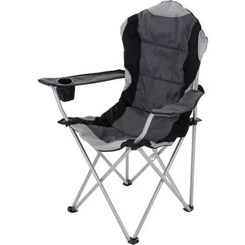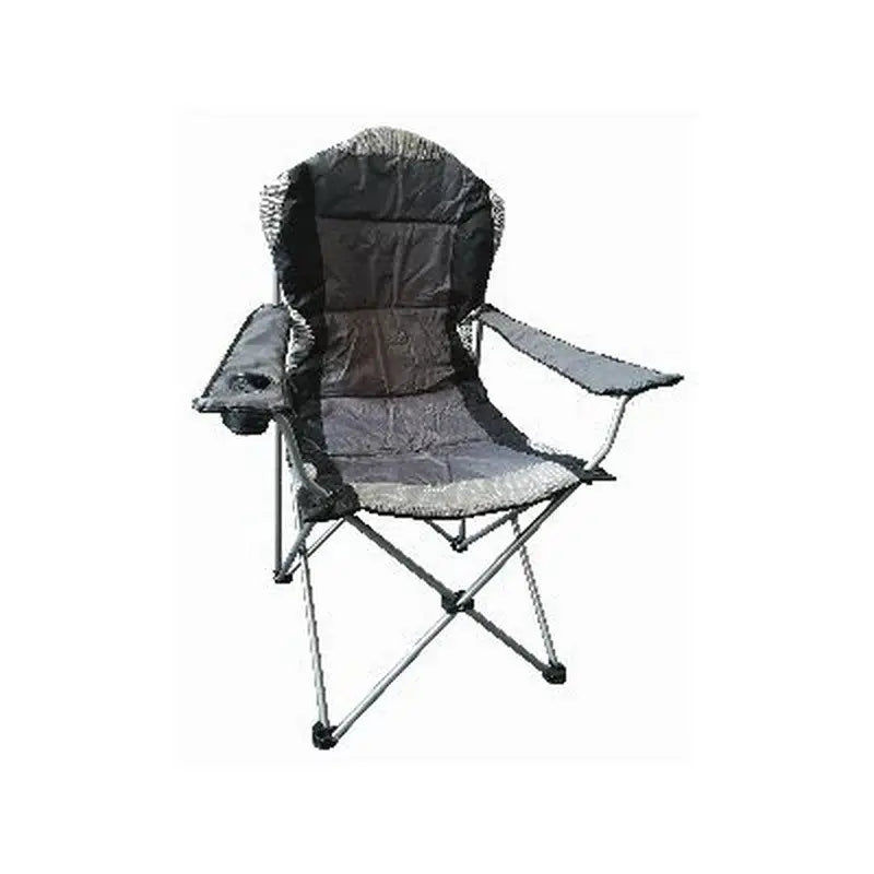 This chair is manufactured with a lightweight but sturdy tubular steel frame with padded panels, breathable mesh areas for comfort & handy cup holder in right armrest. Ideal for a variety of occasional outdoor use, it comes packed in a nylon bag for easy storage & transportation. BS EN581.