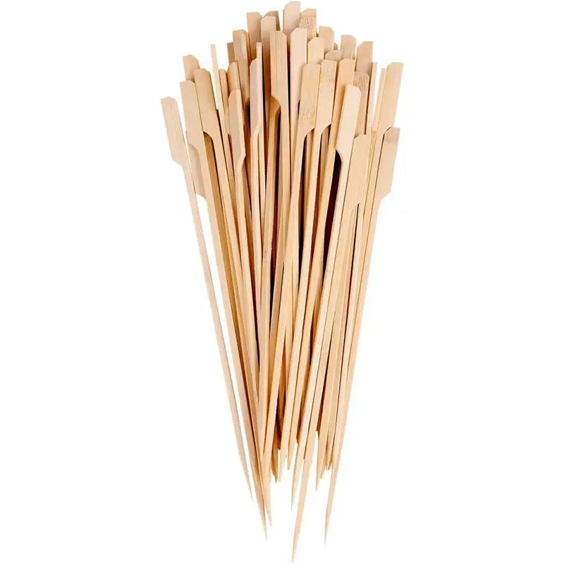 These single use only bamboo skewers are ideal for use with all food groups on the BBQ & under the grill. The paddle shaped end allows easy food turning while cooking.