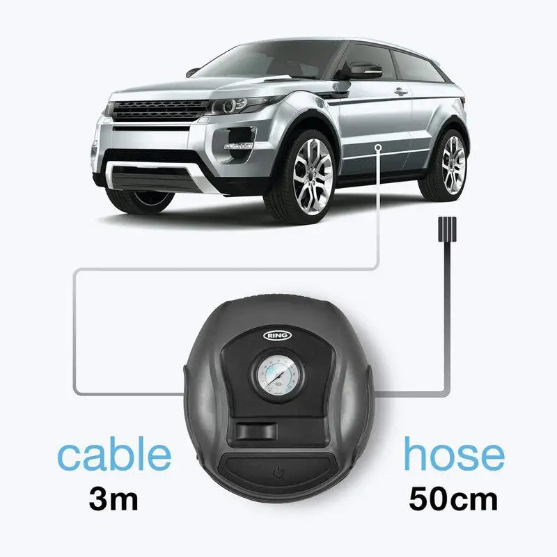- Designed for High Performance. Flat design remains stable during inflation and rests on the ground – no need to hold during inflation. The 3m cable reaches tyres all around the vehicle