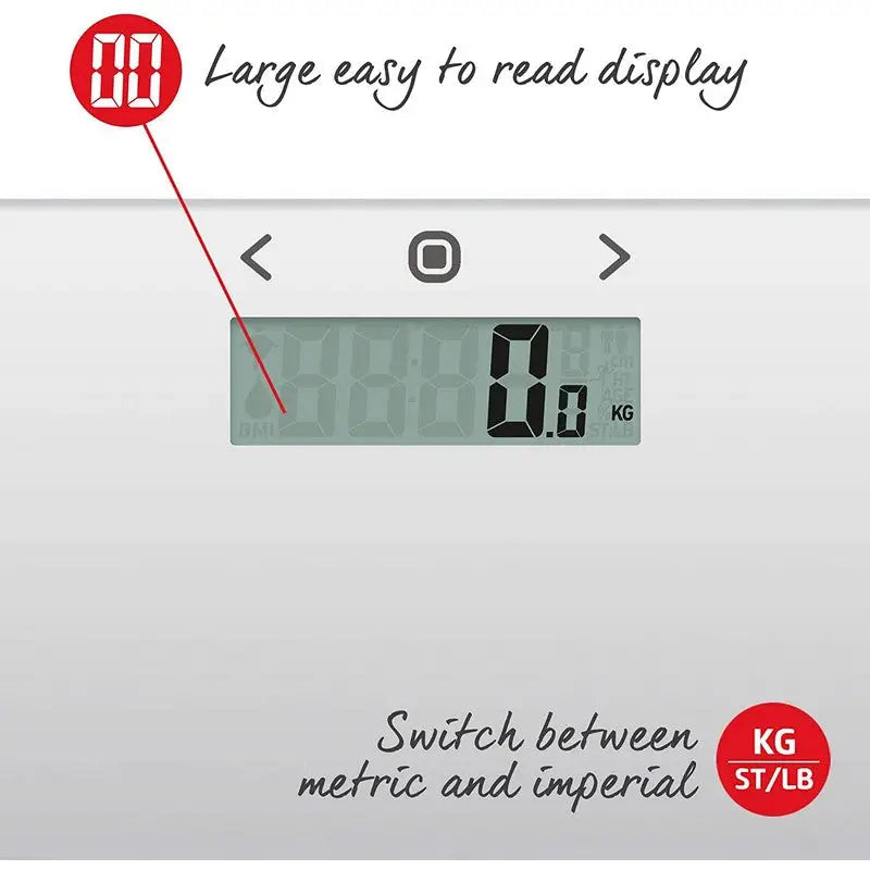 Measuring fitness and planning a nutrition plan for yourself means you need to be aware what your body weight truly means. By measuring weight as well as body fat percentage, body water percentage and BMI, you can easily track your fitness progress whatever routine you follow. Perfect for those who exercise regularly, this scale comes with an Athlete Mode that keeps a track of your fitness goals. Use the eight-user memory to get your friends and family involved and reach your fitness goals together. Touch controls and a contemporary design make this Salter bathroom scale not just practical but stylish too.