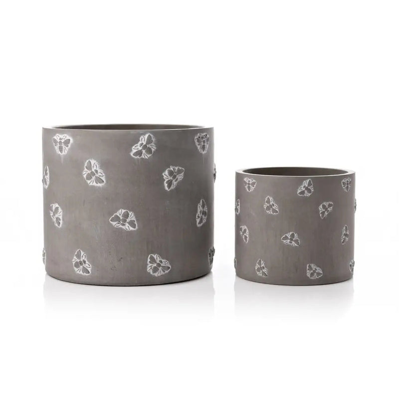 Set Of 2 Grey Bee Round Pots 20cm & 14cm