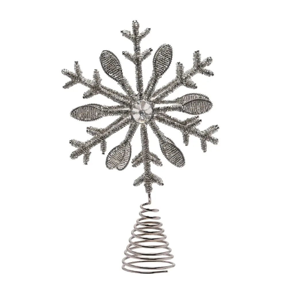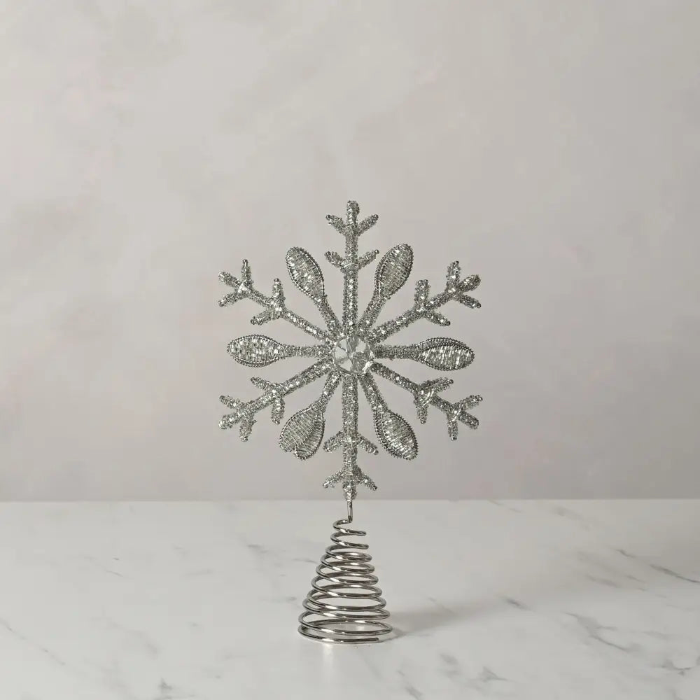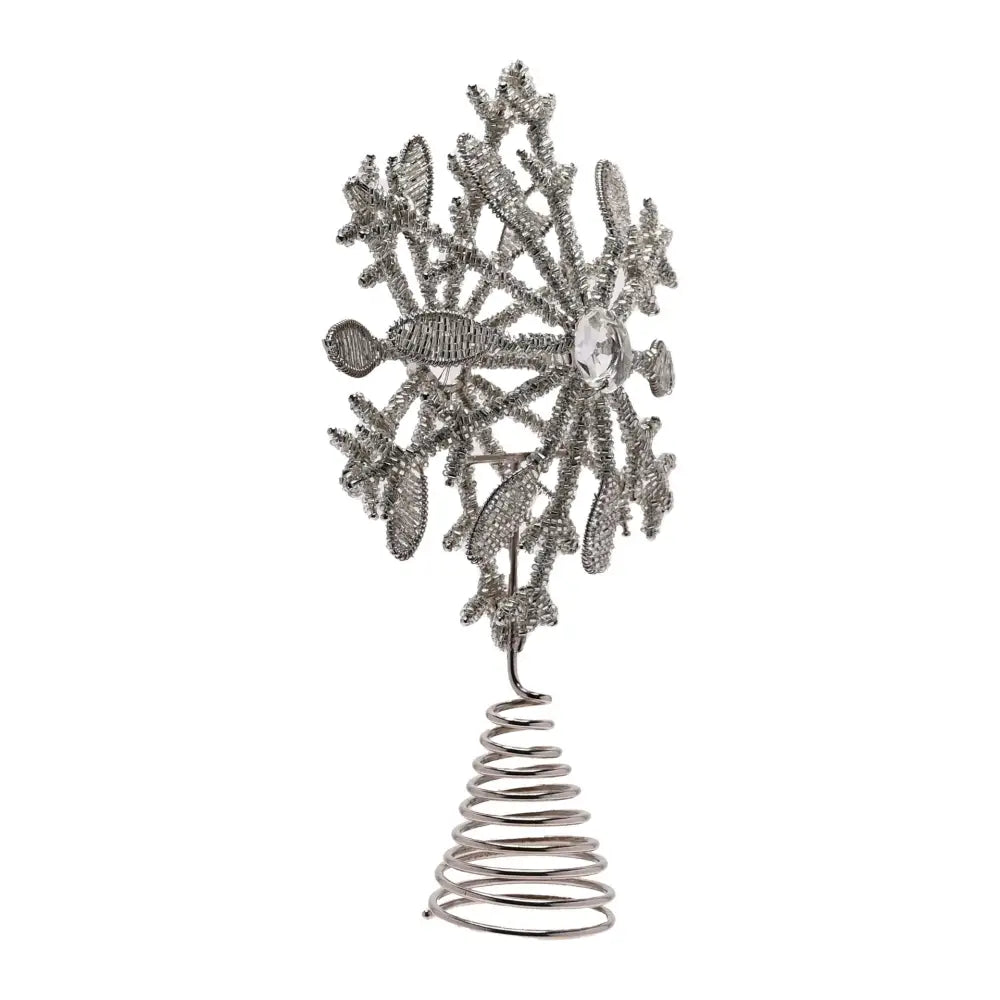 Bring a glittering sparkle to your holiday decor with this Silver Glitter Beaded Snowflake Tree Topper. The perfect finishing touch for any Christmas tree, this topper features a classic design of silver beaded snowflakes, bringing radiant shimmer and contemporary style to your home.
