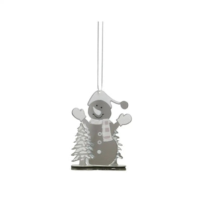 Silver Snowman And Tree Mirror Hanging Decoration 8cm
