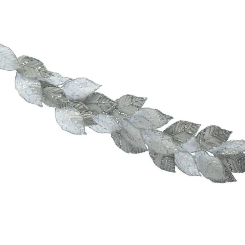 This 118cm Silver with Silver Glitter and Leaf Garland offers a holiday flair that's easy to assemble. Each garland can be reshaped and fluffed by gently teasing the leaves to get your desired look. Enjoy a perfect holiday decoration or gift for a special someone.