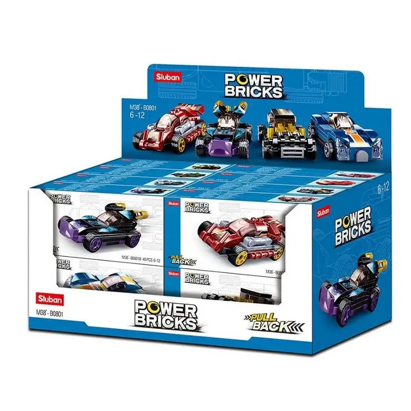 Experience endless fun with the Sluban PowerBricks Pull Back Car Toy. Each purchase includes one exciting car chosen at random from eight unique designs. Simply pull back and release to watch the car race forward, delivering simple yet thrilling play. Perfect for enhancing coordination and sparking imaginative adventures, this durable toy brings speed and excitement to any playtime. Collect them all to build your own racing fleet!