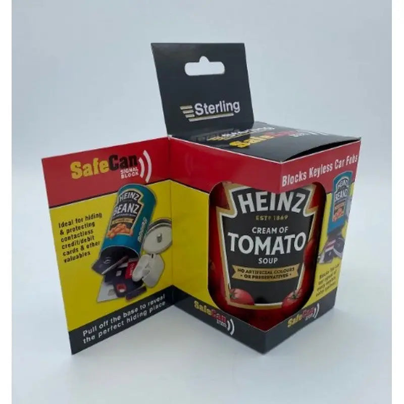 Experience the unique combination of classic comfort and modern security with the Sterling Safe Can Heinz Tomato Soup. This cleverly designed safe mimics a Heinz tomato soup can, providing discreet storage for valuables. Equipped with RFID blocking technology, it protects your cards and personal information from electronic theft. Perfect for keeping your essentials secure at home or on the go, this safe blends practicality with peace of mind in a stylish, unexpected form.