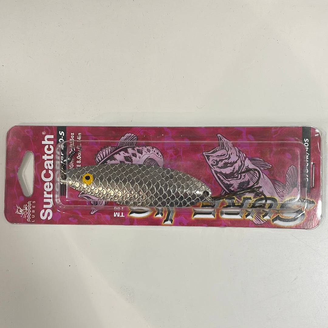 Introducing the SureCatch SureJig Lures Coaster 40-S, a powerful 40g (2.5oz) lure designed for ultimate fishing success. With its innovative design and durability, this 8cm (3.14") lure guarantees a high catch rate. Make every fishing trip a success with the SureJig Lures Coaster 40-S.
