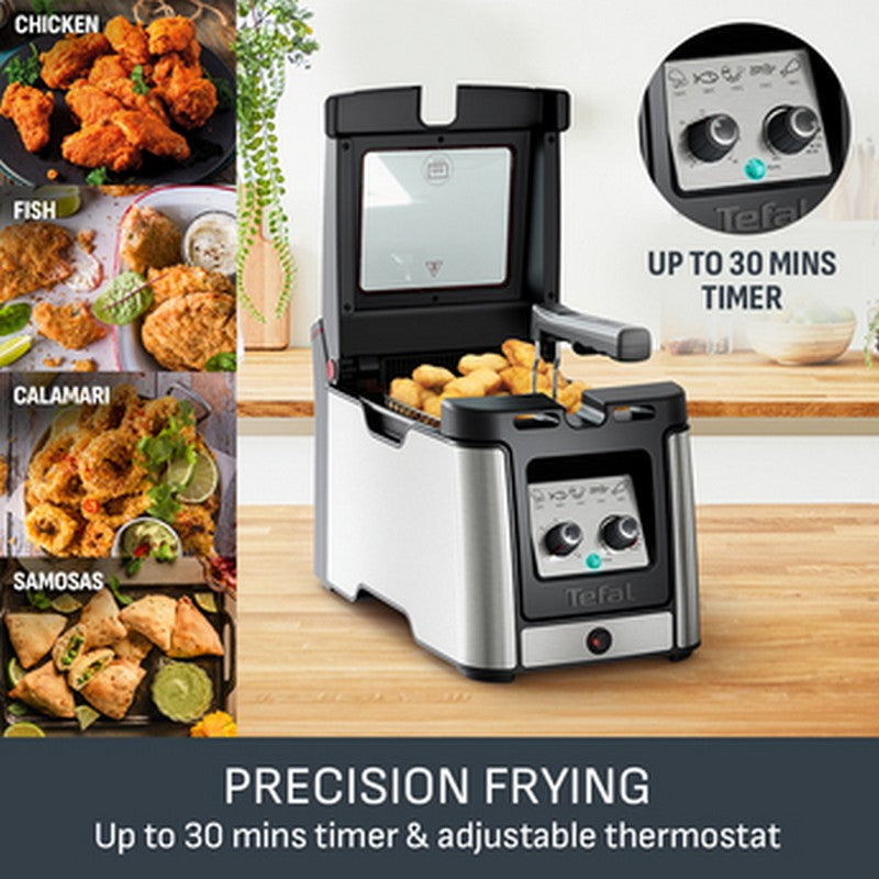 The Tefal Odourless XL Deep Fat Fryer offers a generous 3.5-litre capacity, perfect for frying larger batches with ease. Crafted from durable stainless steel, this fryer minimizes cooking odors, keeping your kitchen fresh. Its efficient design ensures even frying for crispy, delicious results every time. Ideal for family meals or entertaining, it combines practicality with superior performance to elevate your cooking experience.