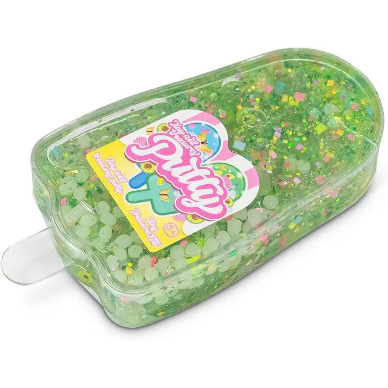 - Brightly coloured sparkly putty that can be moulded, shaped and stretched. The groovy putty inside each lolly-shaped container features mermaid, butterfly and avocado designs.