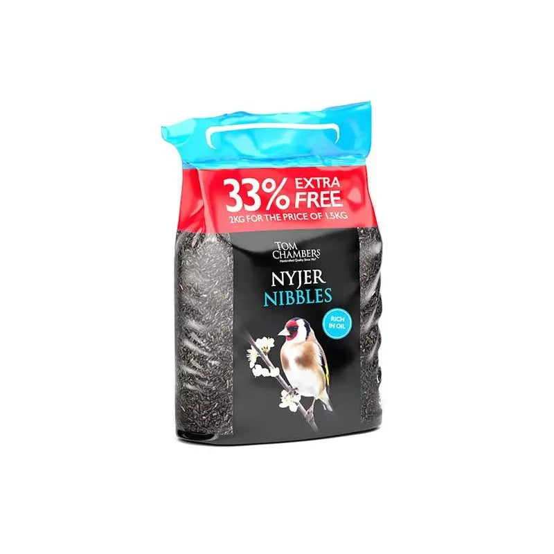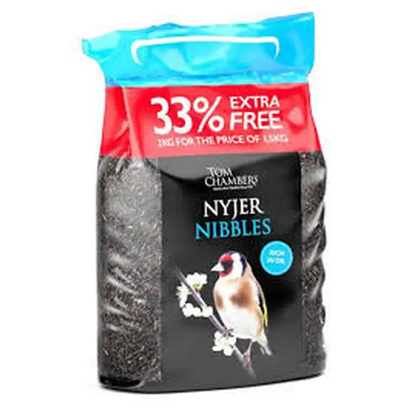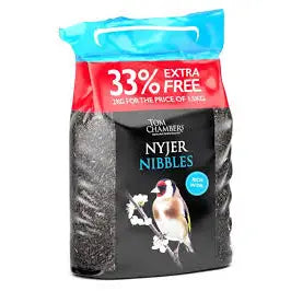 Tom Chambers Nyjer Nibbles are the perfect feed for your favourite small garden birds such as finches. Feed from a specialist nyjer feeder.