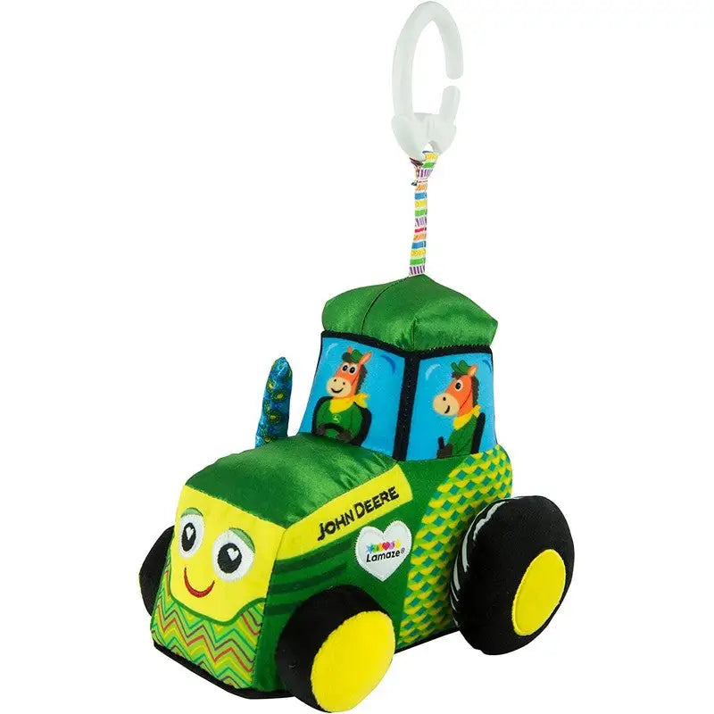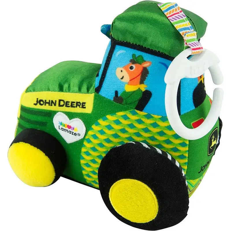 - Babys first John Deere tractor is full of developmental features. Explore the multiple textures and turn the tractor wheel as baby works on fine motor development.