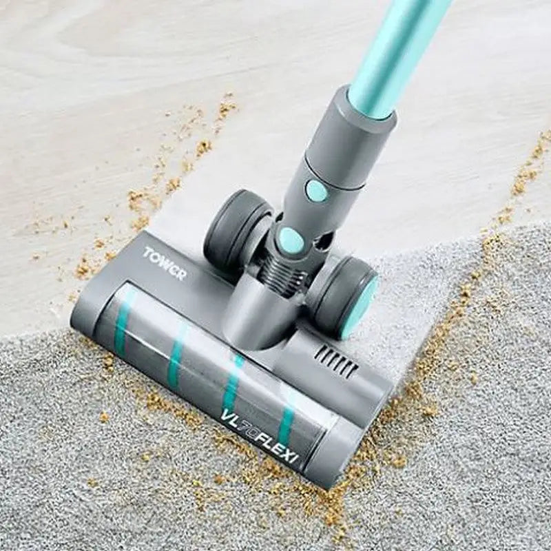 The Tower VL70 Flexi 3in1 Vacuum offers versatile cleaning with cordless convenience. Use it as a powerful vacuum for carpets and hard floors, a detachable handheld for cars and upholstery, or with the 75cm flexi pole to reach under low furniture. Its high-powered 29.6V Li-ion battery provides up to 40 minutes of strong suction on a single charge. The cyclonic suction technology ensures consistent airflow, effectively lifting dirt and pet hair from all surfaces. Complete with crevice and brush tools, this vacuum makes thorough cleaning effortless and efficient.