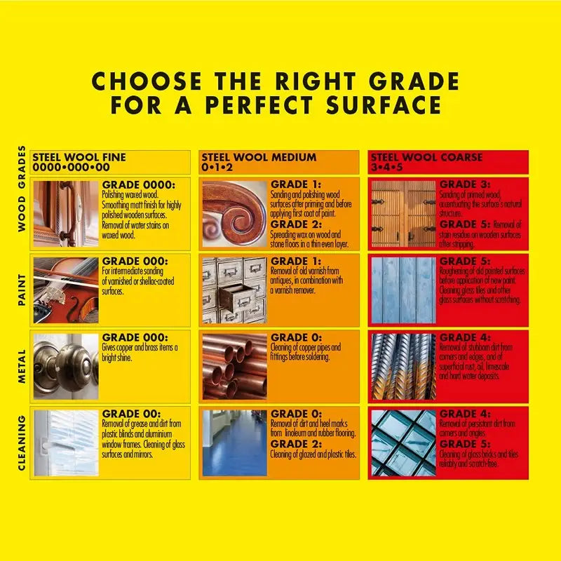 - TROLLULL steel wool is available in 3 fine grades: 0000, 000 and 00. Ideal for polishing, fine intermediate sanding, or cleaning delicate surfaces such as wood, glass, mirrors, aluminium, copper, brass, painted and varnished finishes, and plastic.