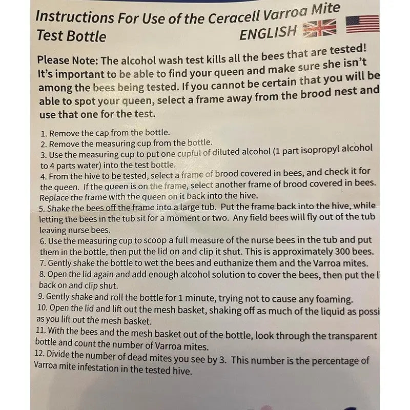 The Varroa Check Test Jar is a necessary tool for monitoring the effectiveness of varroa mite treatment. With this test bottle monitor, beekeepers can easily check the number of varroa mites present in their hives, allowing for a more informed and efficient treatment plan.