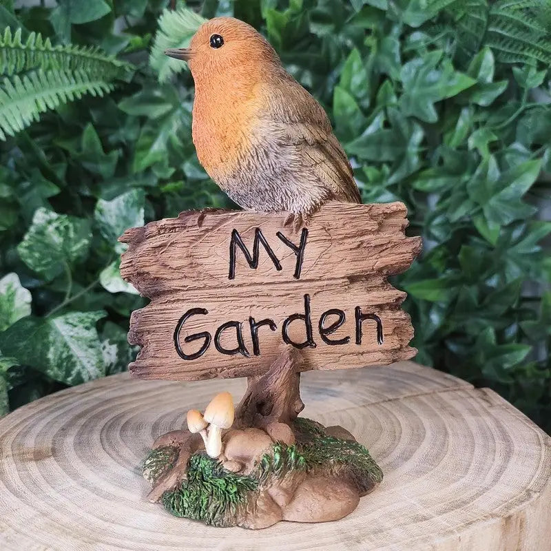 Enhance your garden with the charming Vivid Arts My Garden Sign featuring a delightful Robin. This durable sign will add a touch of whimsy to any outdoor space, making it the perfect addition for any nature lover. Show off your love for gardening and birds with this beautiful sign!