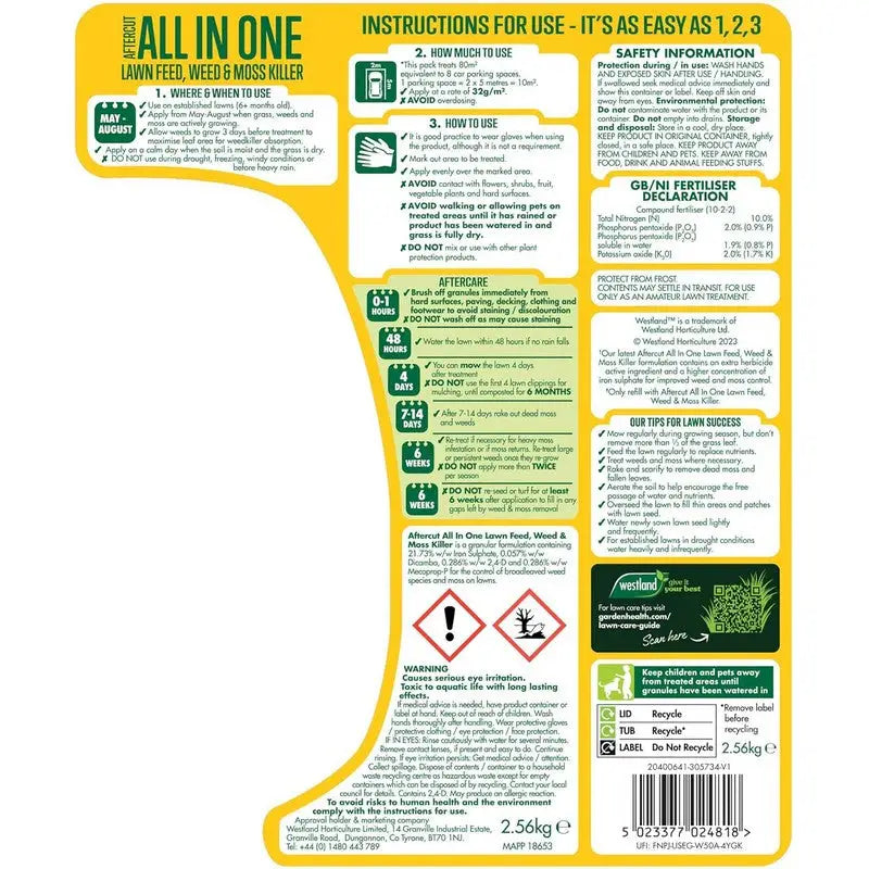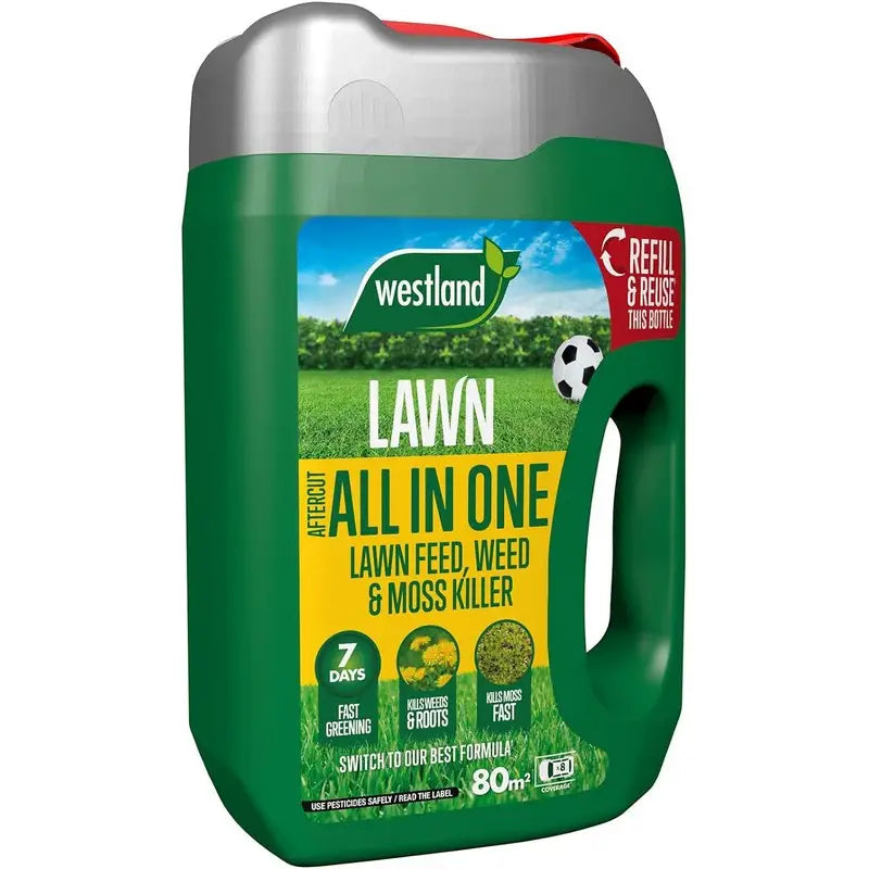 Westland Aftercut All In One Lawn Feed, Weed & Moss Killer is a triple action lawn treatment that greens and feeds your lawn, whilst also controlling weeds and moss. After 7 days you will see a greener lawn! It will is effective against 12 different weed types and will create a better root system and stress resistance too. The balanced amount of nitrogen means you will get a thicker lawn which requires less mowing.