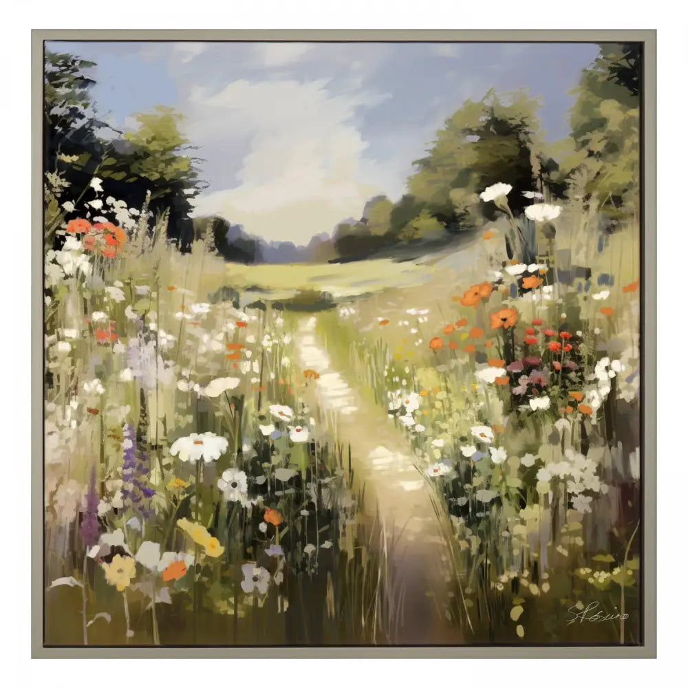 Bring the beauty of nature indoors with the Wildflower Wander Picture. Measuring 51x51x3cm, this artwork captures the delicate charm of wildflowers, adding a fresh and calming touch to any room. Its compact size makes it perfect for enhancing your living space without overwhelming it. Elevate your décor with this elegant piece that invites tranquility and natural elegance into your home.