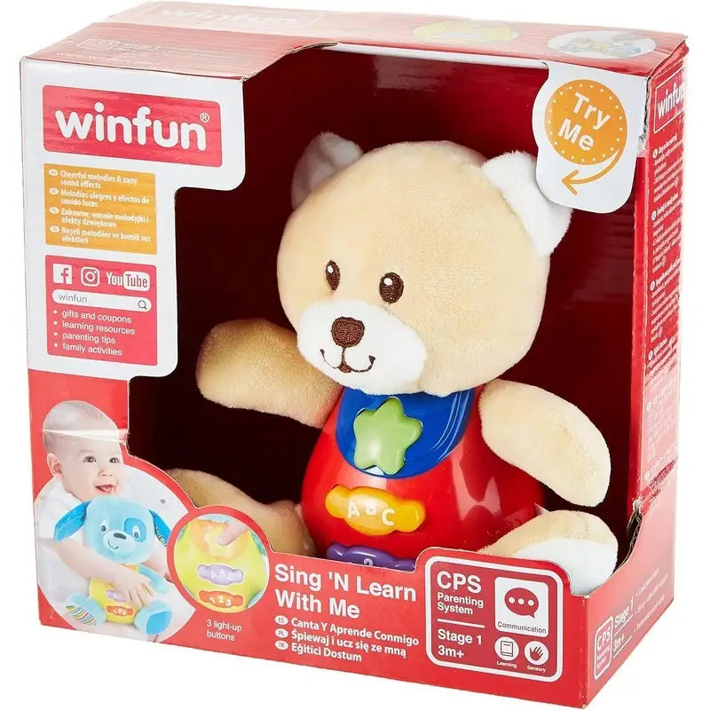 The Winfun Sing N Learn With Me Bear brings learning and fun together in one delightful interactive toy. Designed to engage young children, this bear sings songs and encourages learning through playful melodies and sounds. Its friendly design invites cuddles while promoting early language skills and sensory development. Perfect for keeping little ones entertained while supporting their growth, this bear is a charming companion for your child’s learning journey.